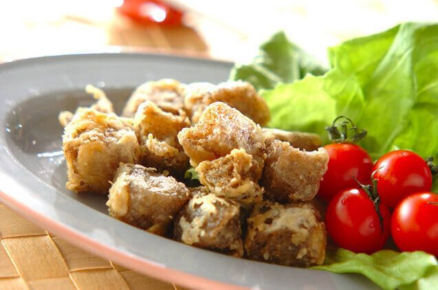 冷凍こんにゃくは肉の唐揚げを作るときと同じように、下味をつけた後、小麦粉をつけて唐揚げにします。