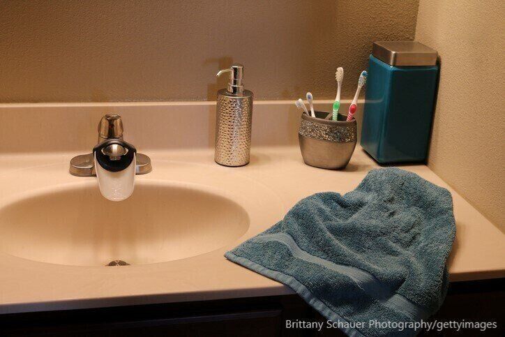 雑巾やクロスを常に洗面台に置いておき、使用後はすぐ水気を拭くようにしましょう。置いておくのは気になるという場合は、近くにフックでぶら下げておくのもおすすめです。使ったらすぐ拭くを習慣にすれば、水垢予防になりますよ。
