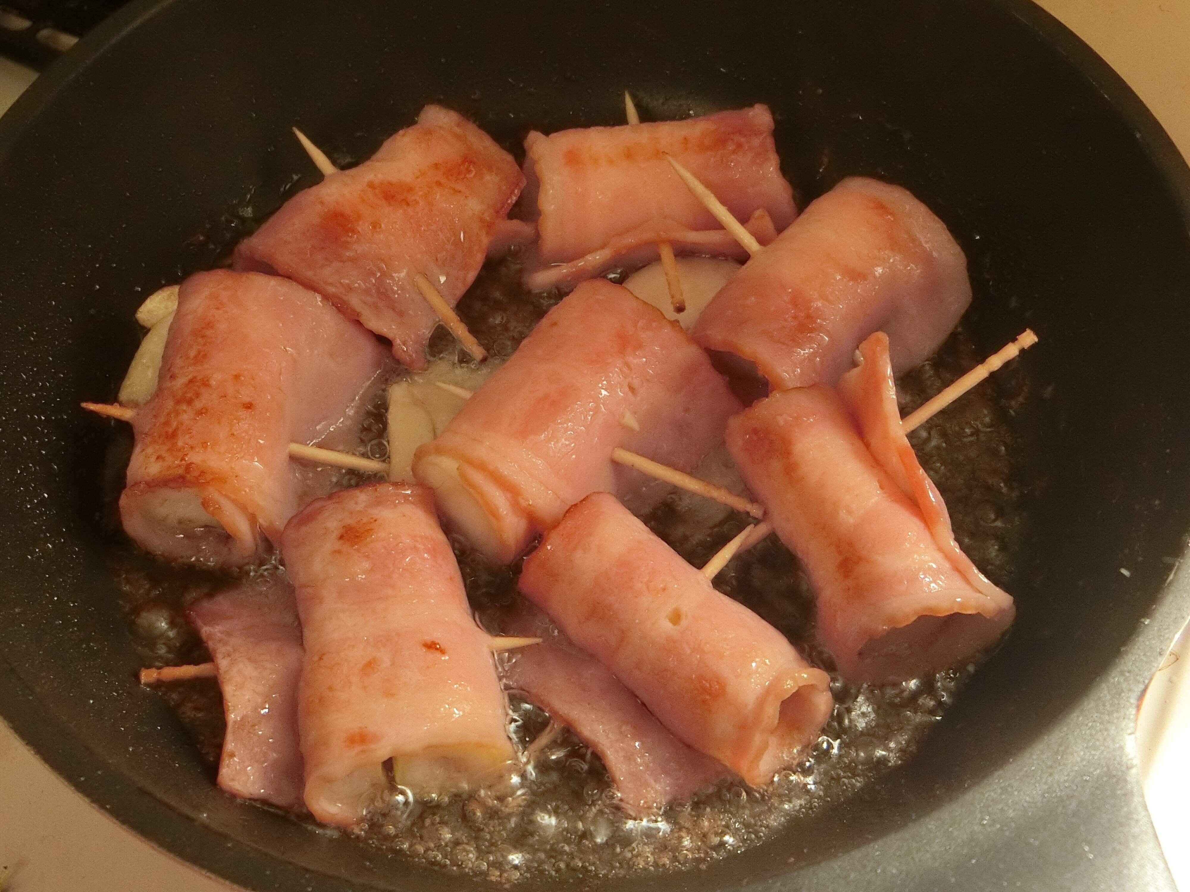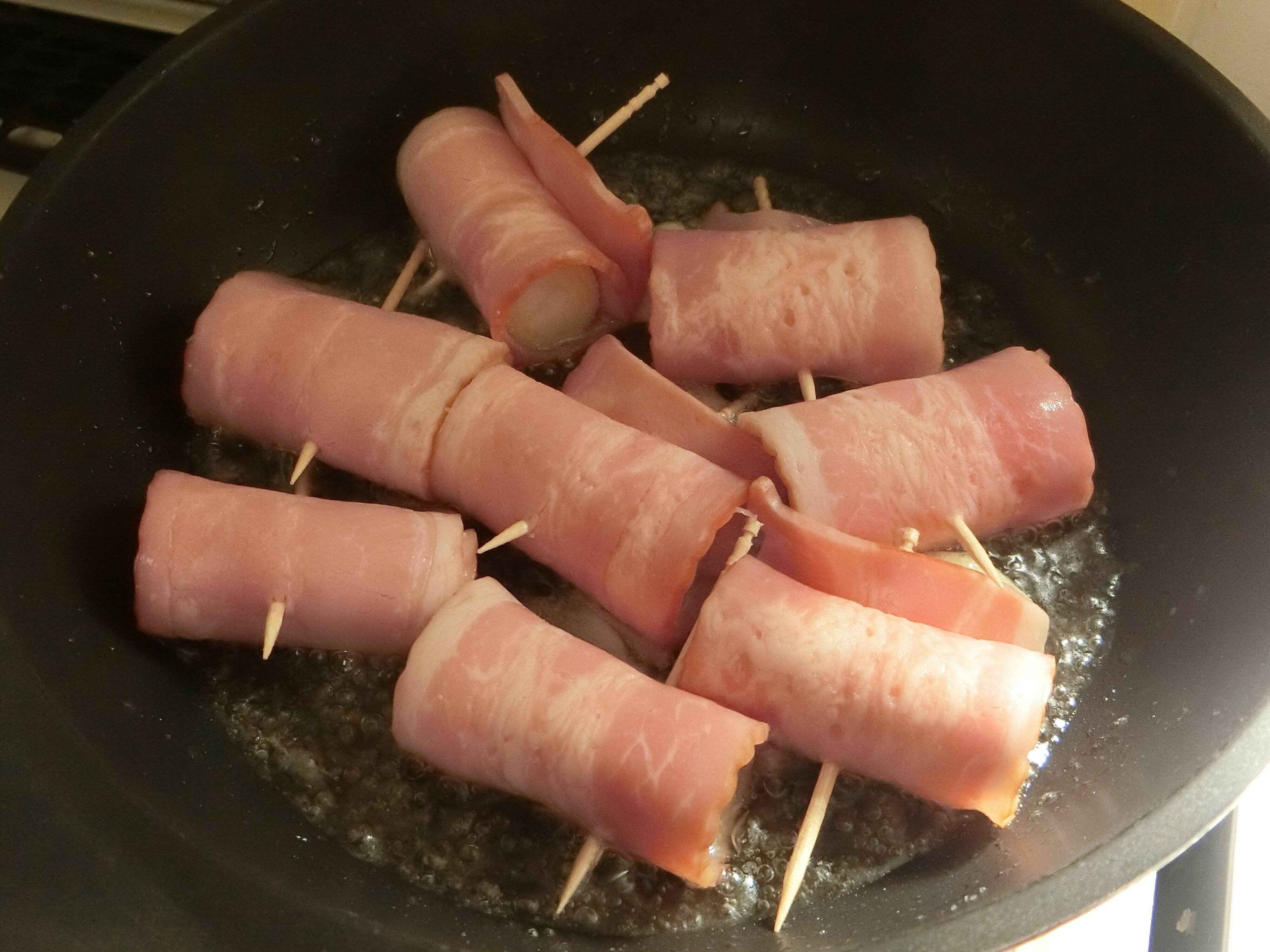 ニンニク香る「ベーコン巻きネギのオリーブオイル煮」