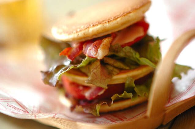「BLT」といえば、ベーコン、レタス、トマトを挟んだハンバーガーやサンドイッチが有名ですが、パンケーキでもおいしい軽食になります。