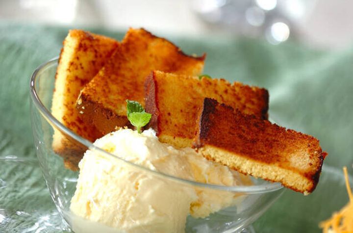 サクサクしたカステラはアイスクリームにもよくあうので、冷凍カステラを使って作ってみましょう。