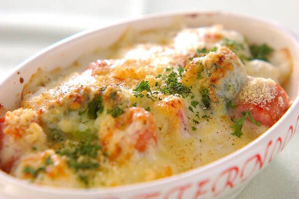 「コロッケグラタン」は、コロッケをグラタンの素材として使います。グラタンとして加熱して仕上げるため、凍ったままコロッケを使うことも可能ですが、崩しやすくするために少し解凍しておくとよいでしょう。