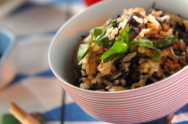 「キノコとヒジキの炊き込みご飯」では、具材をご飯と一緒に炊き上げるため、冷凍ひじきを解凍せずにそのまま使えます。冷凍ひじきを使えば、下準備としてひじきを戻す手間と時間がかかりません。