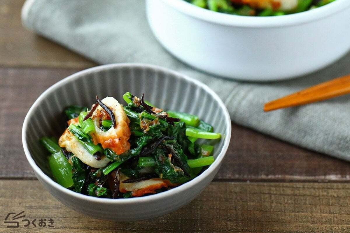 「小松菜とちくわとひじきの和風サラダ」に冷凍してあるひじきを使えば、下準備としてひじきを戻す時間を省略できるため、調理時間が短縮されます。