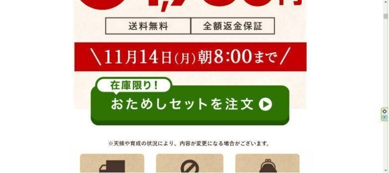 お試しセットには全額返金保証がついています。利用条件は下記のとおりです。