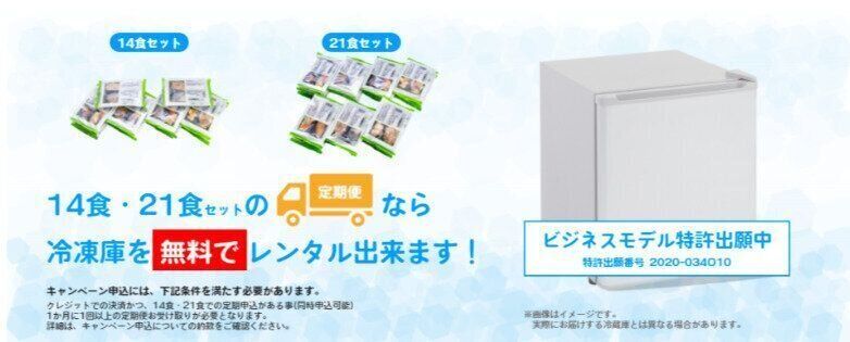 『まごころケア食』では、14食または21食を定期購入すると冷凍庫の無料レンタルが可能です。1セットにつき冷凍庫1台をレンタルできます。