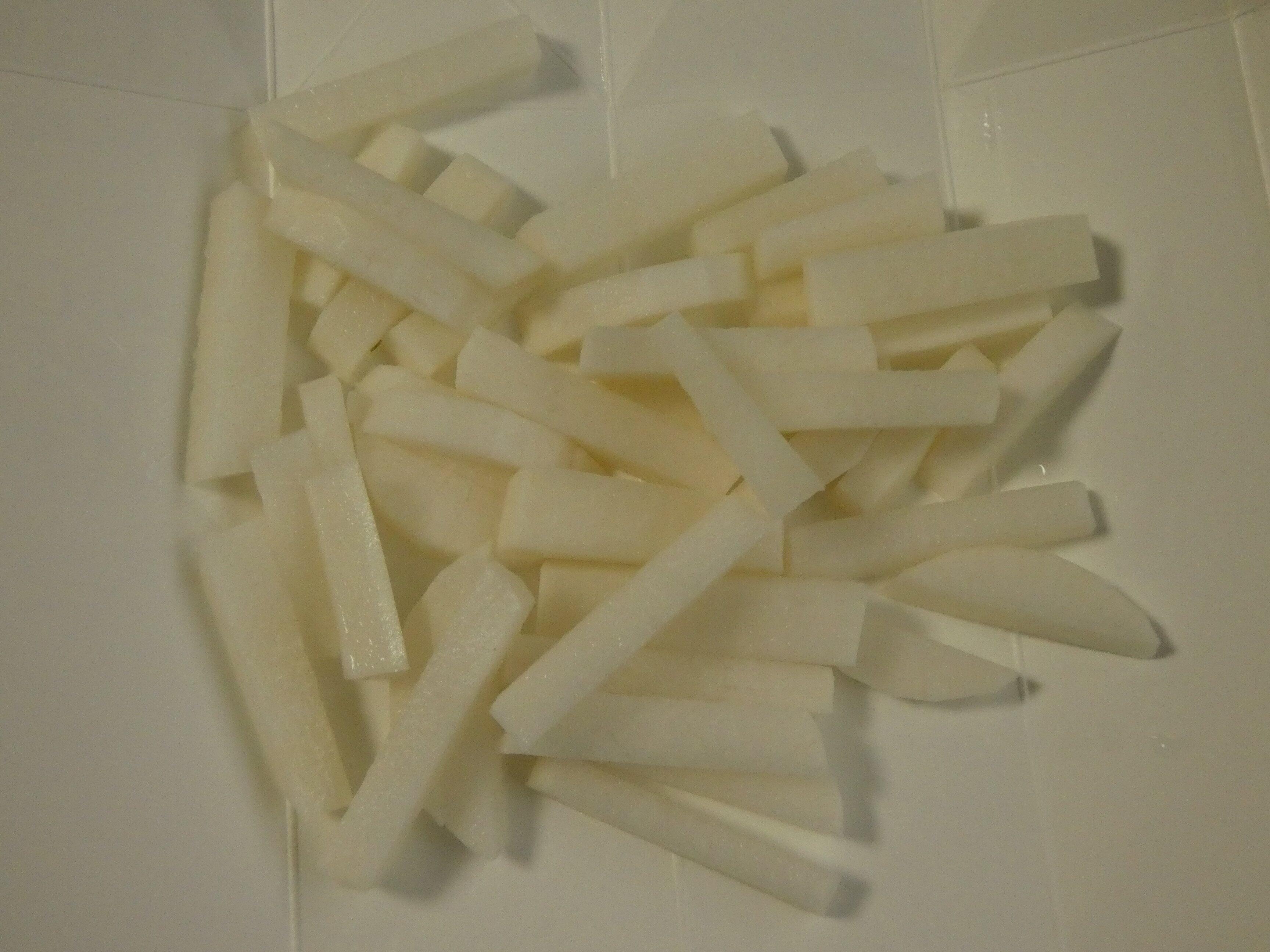 油で揚げるときは大根がくっつかないように、入れすぎずに離して揚げるといいです。