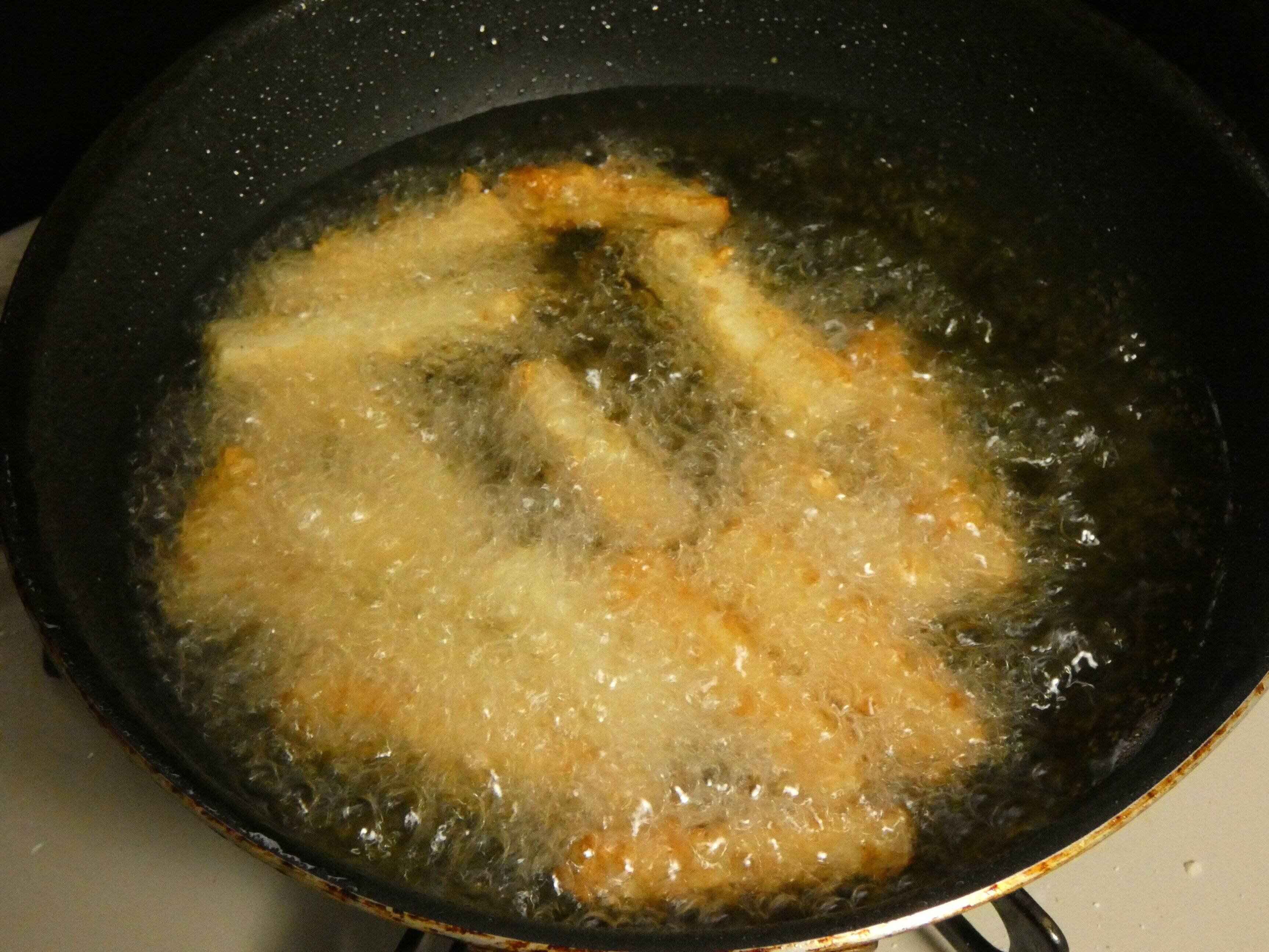 3.中温くらいの油で揚げて、きつね色になったら完成