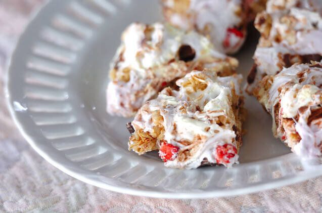 「シリアルマシュマロ」とは、冷凍マシュマロをオーブンで溶かし、シリアルと混ぜ合わせて冷蔵して固めるお菓子です。