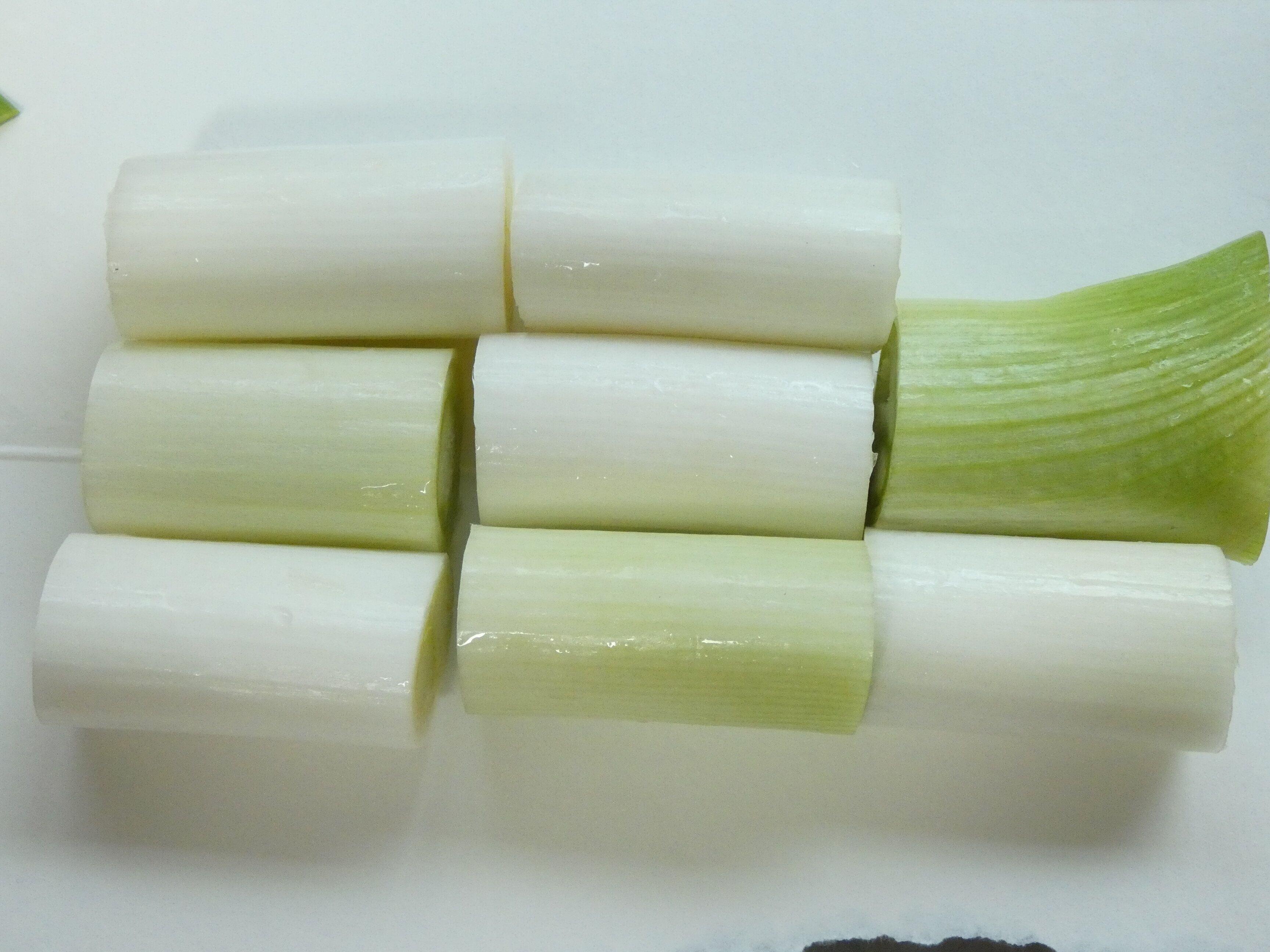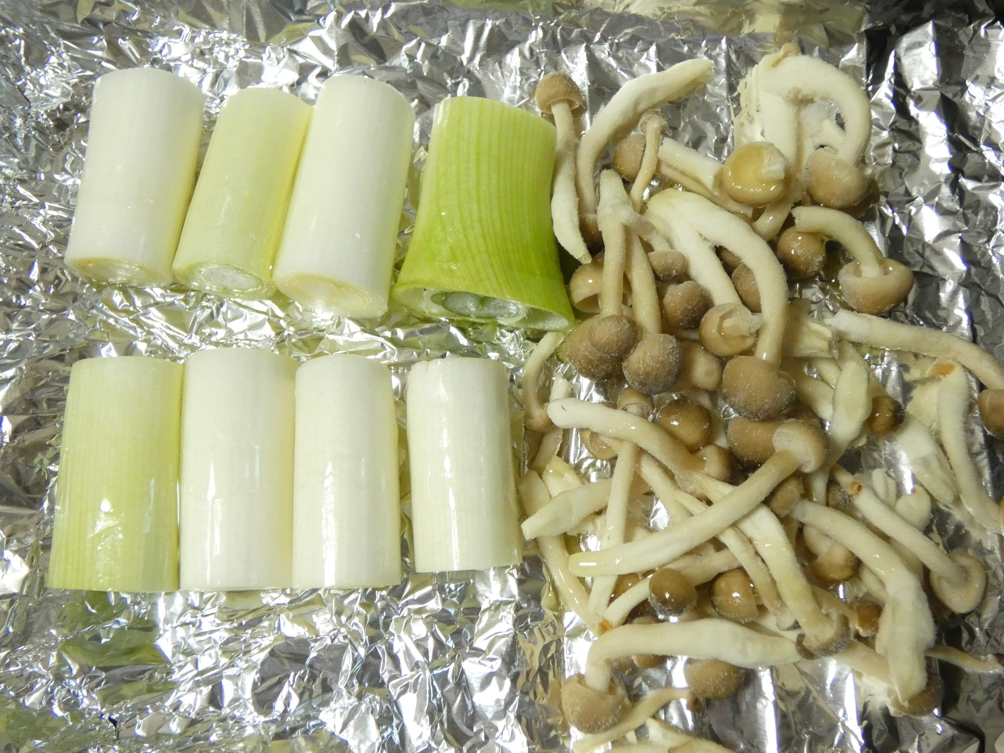 1.長ねぎは4~5cm位の長さに切ります。しめじは石づきを落としてほぐします。