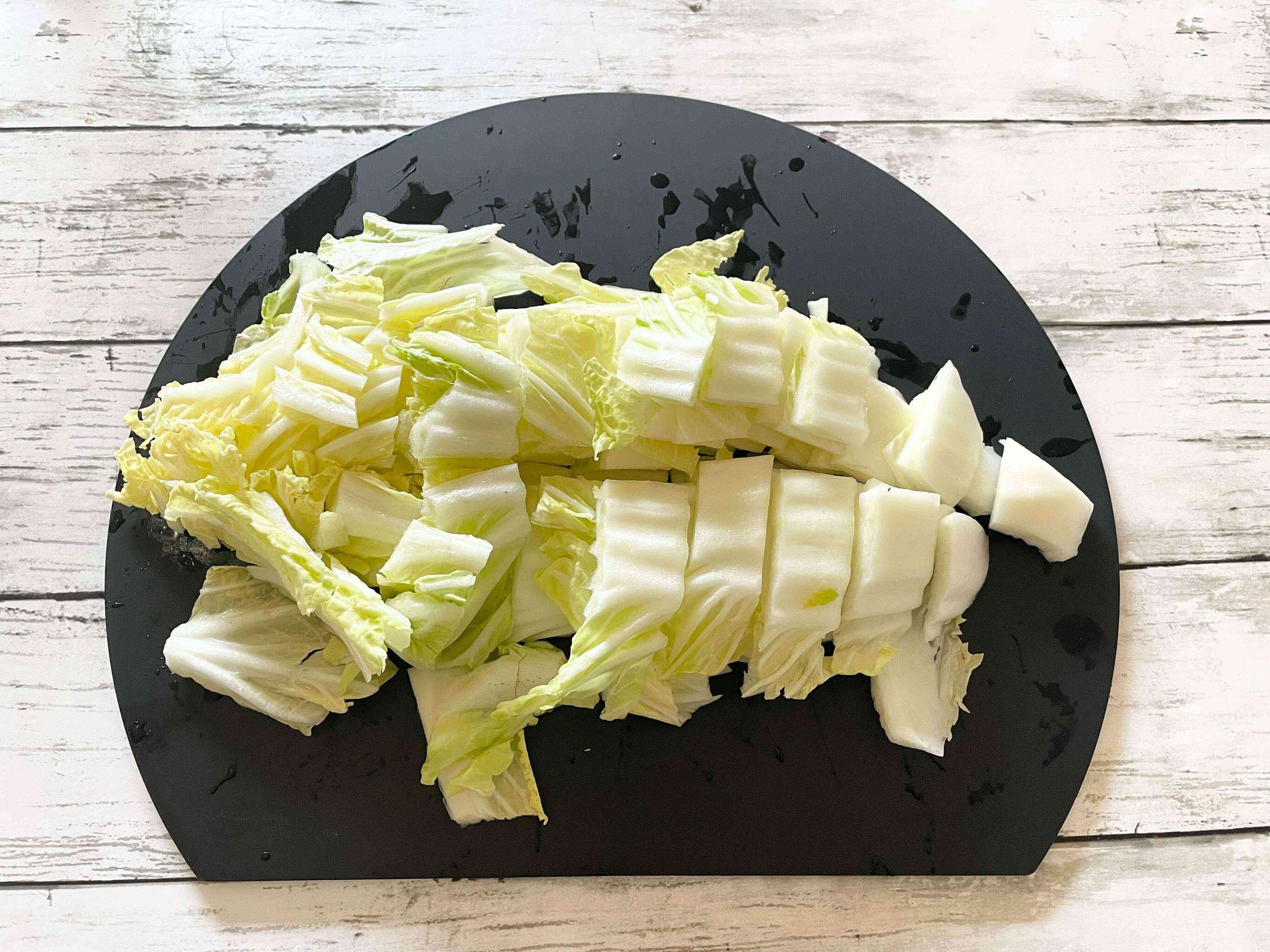 よく洗って水を切った白菜を食べやすい大きさに切ります。
