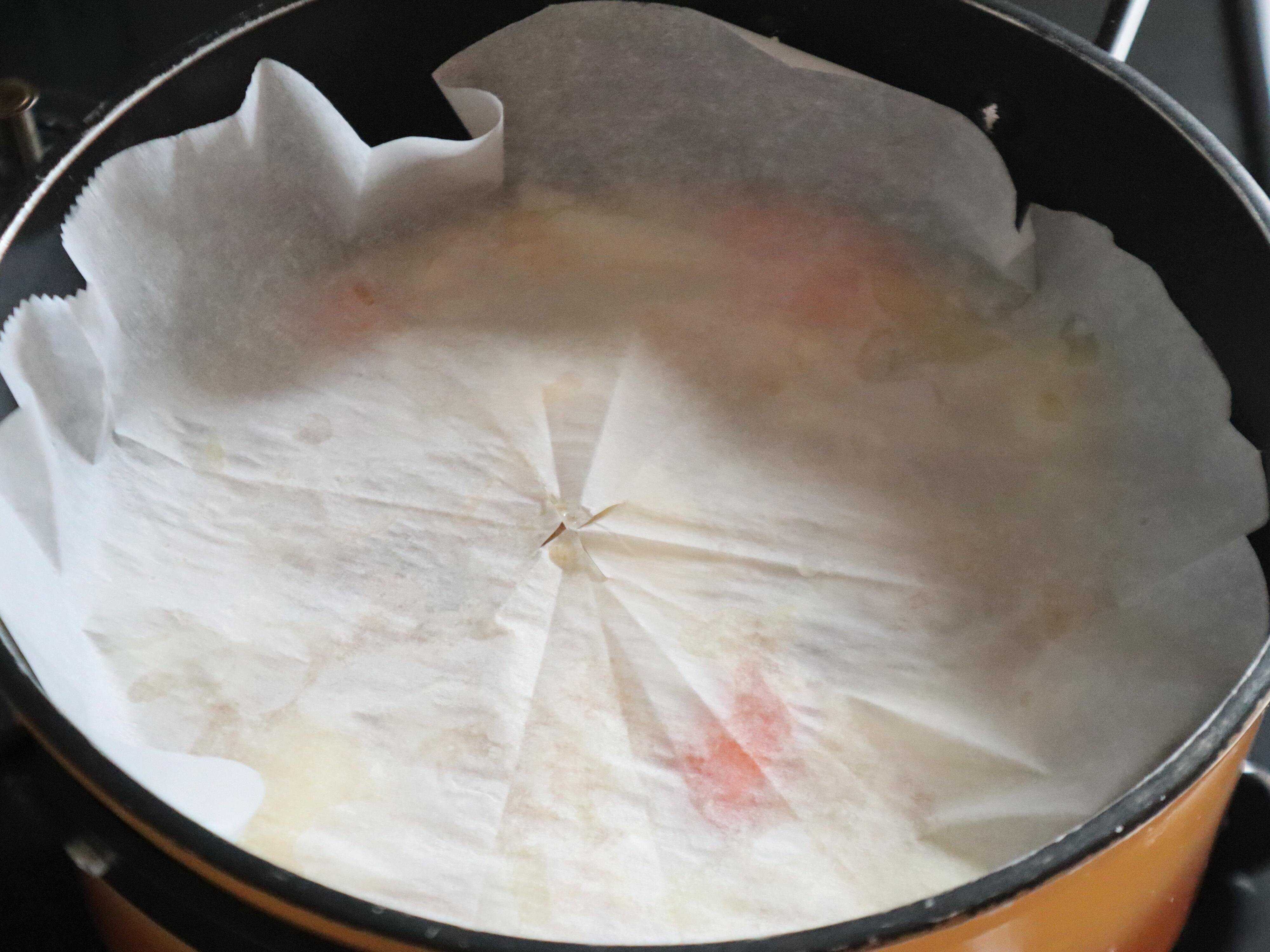 (6) 落としぶたをはずして、約5分煮詰めて水分を飛ばす。