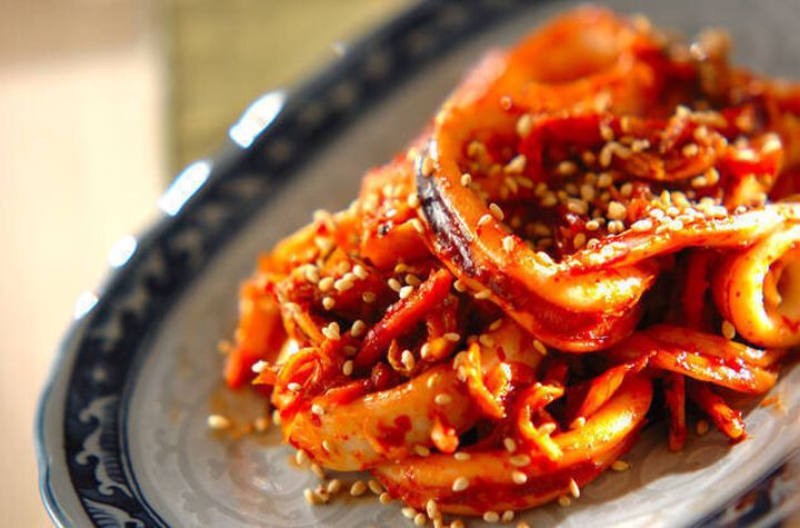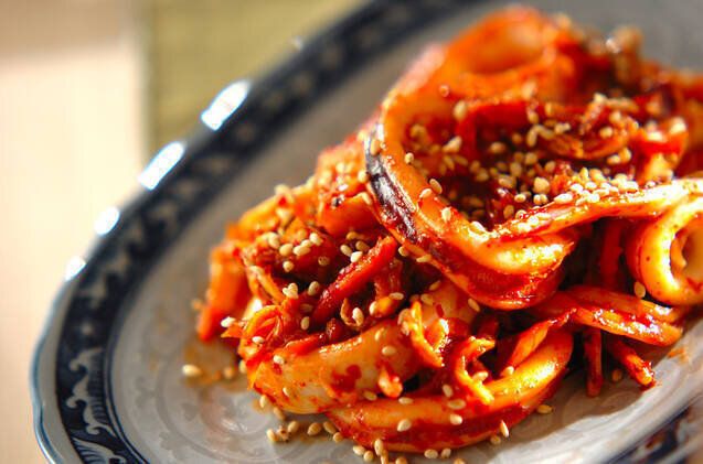 「イカキムチ炒め」はイカとキムチを混ぜ合わせながら炒めるだけでできあがる簡単レシピです。冷凍しているキムチがあれば、調味料代わりに使ってみましょう。