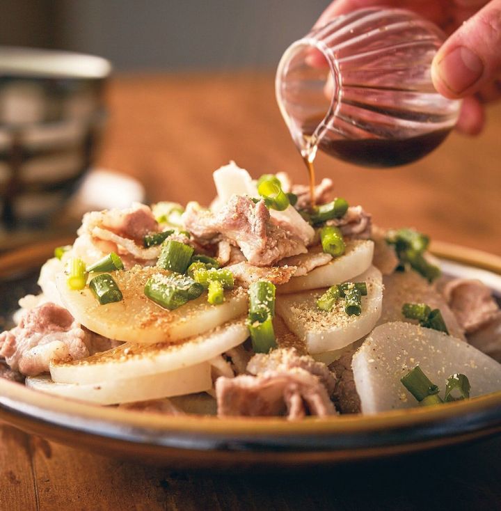 豚肉と大根の重ね蒸しポン酢