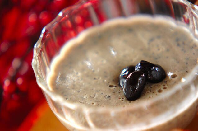 レシピでは固まった黒豆プリンに黒豆を飾りつけているため、形のよい黒豆をいくつかミキサーにかけずに残しておきましょう。