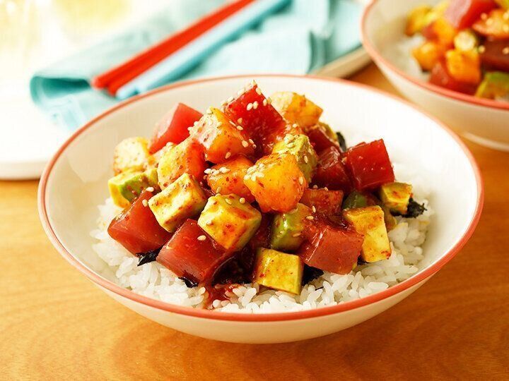 魚介のうま味がマグロとアボカドに合う!カクテキがシャキシャキ♪