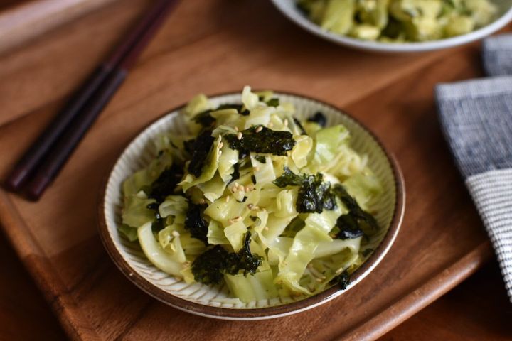 ささっと作れるので、忙しいときにも助かるレシピです。ごま油の風味の韓国のりの組み合わせでやみつきに!仕上げに加えたお酢のおかげでキャベツの甘さがより引き立ちます。