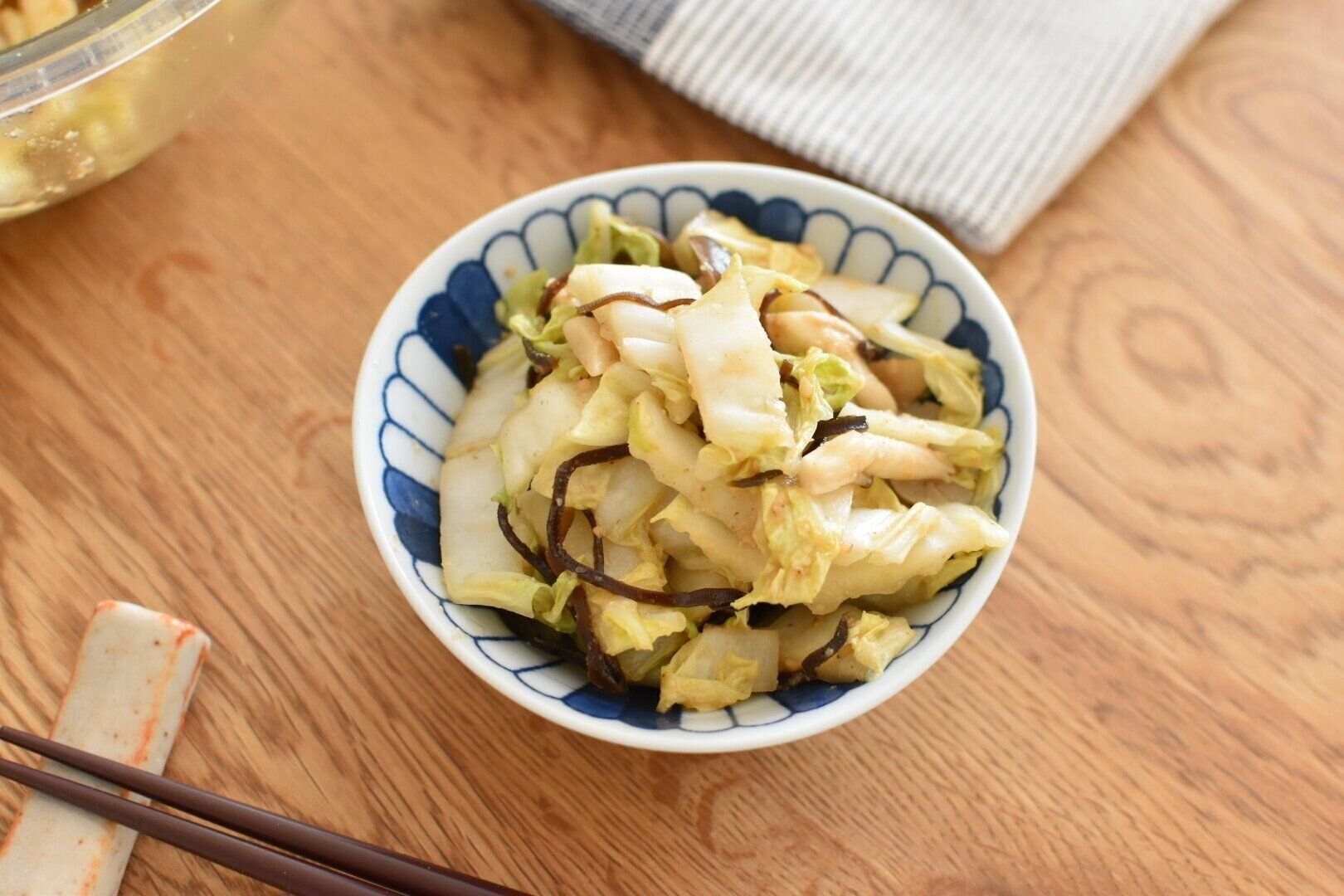3.さっと混ぜ合わせてあら熱をとり、めんつゆと塩昆布、すりごまを入れて全体になじむように混ぜる