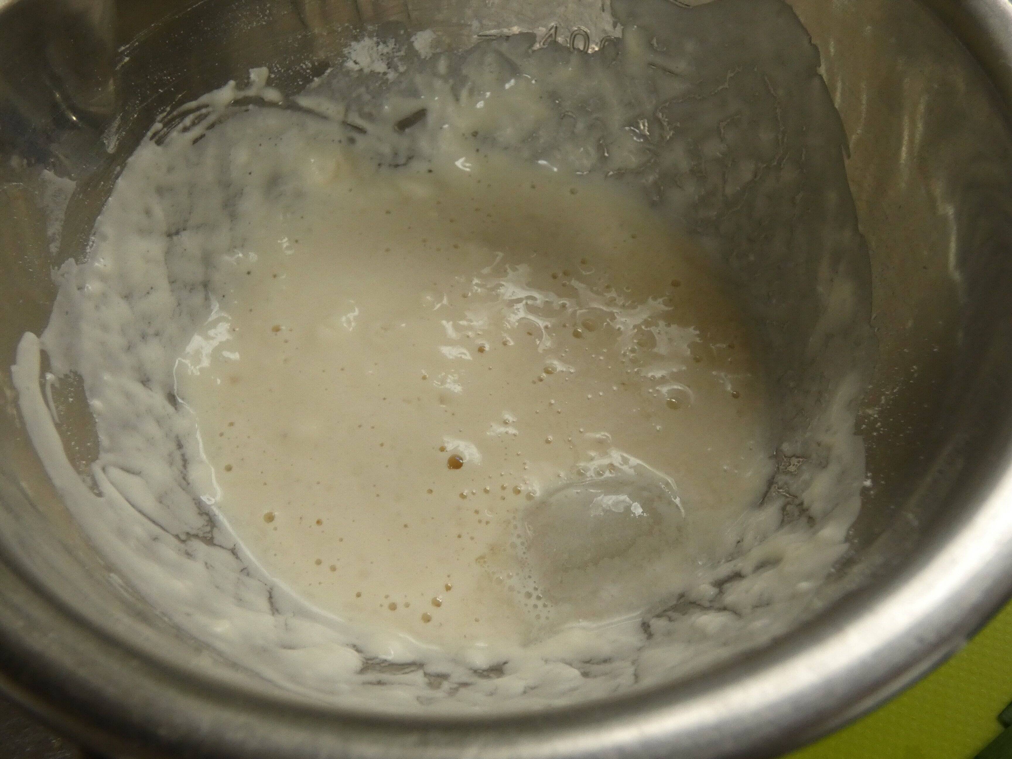 2.薄力粉と水、氷をボウルに入れて混ぜ合わせます。
