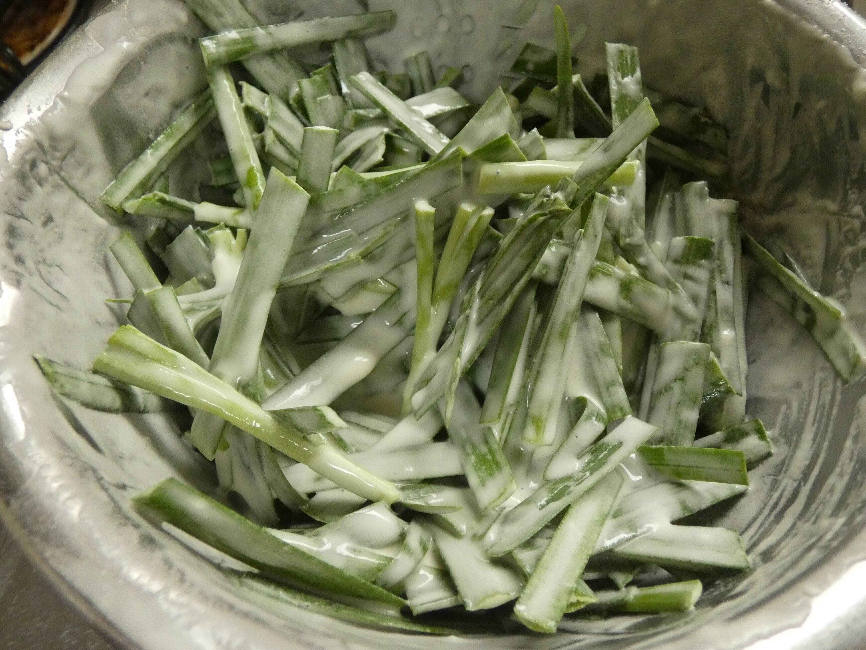 3.ニラを混ぜ合わせます。