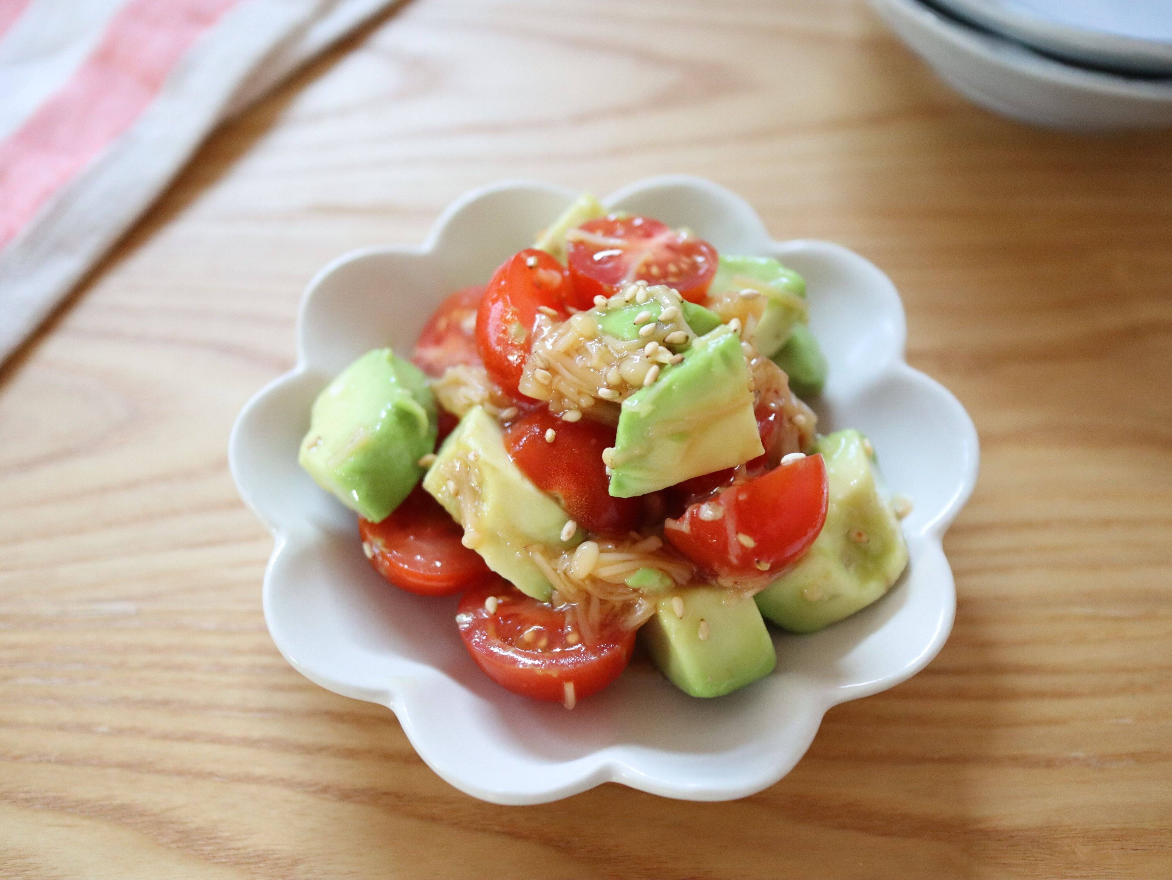 今回ご紹介するのは、ミニトマトとアボカドをなめたけで和えるレシピ。