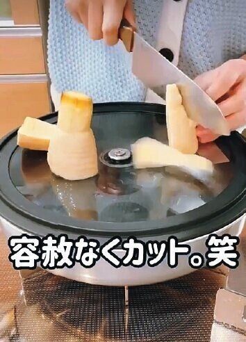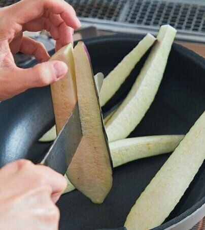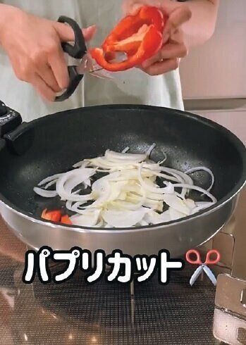 まな板を出して洗うのが嫌で、直接フライパンに入れる方式に(ふたを経由するものあり)。意外と問題なし(笑)。