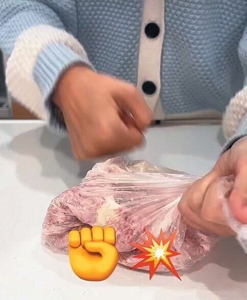 ボウルを洗う手間をカット。もむよりパンチするほうがポリ袋が破れないので、日ごろのストレス発散も兼ねて~。