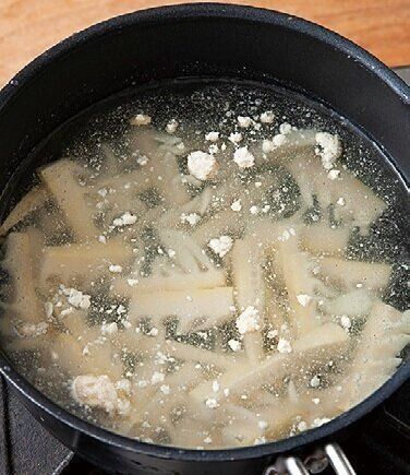 たけのこは薄いくし形切りにする。鍋にたけのこ、[A]を入れて火にかける。
