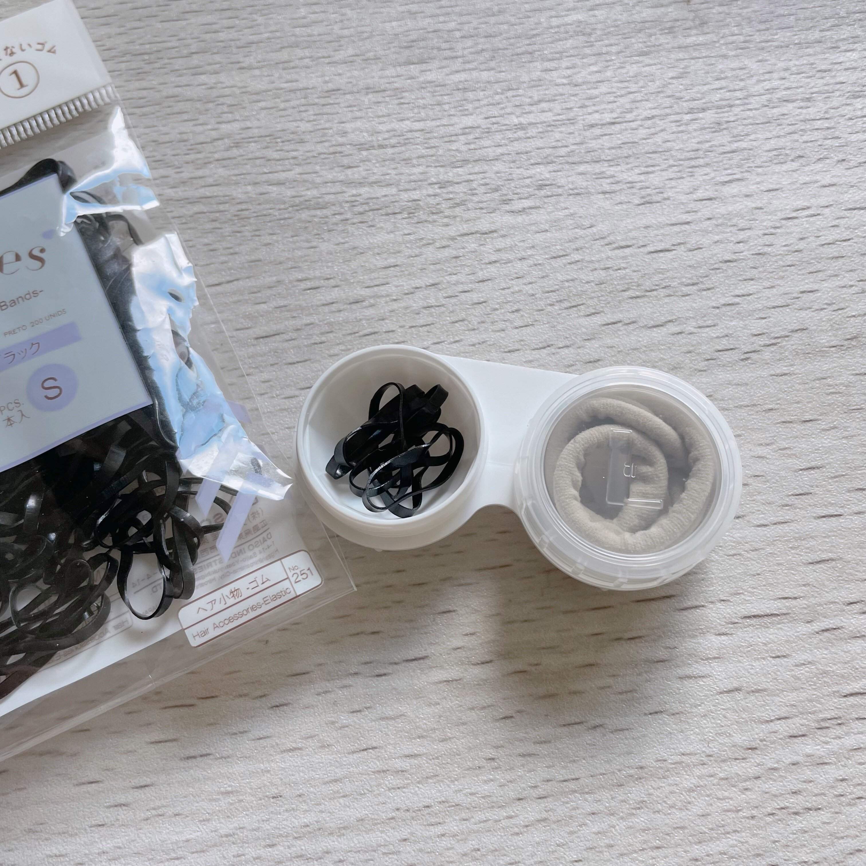 コンタクトケースを収納代わりにすると、ゴムがバラバラになることなくスムーズに用意できます。