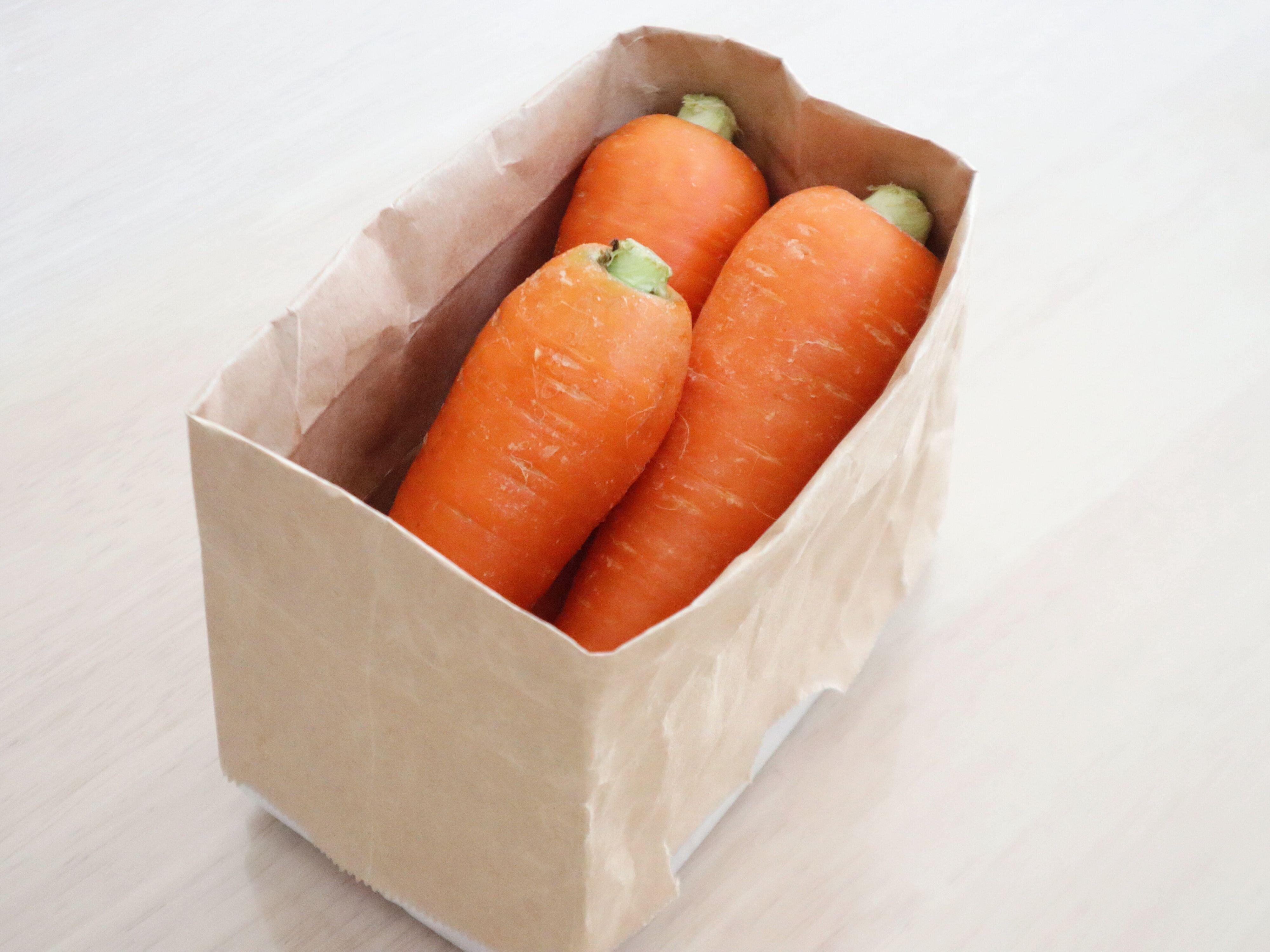 野菜室を紙袋やカゴで仕切って保存するかたも多いと思いますが、にんじんはむき出しのまま保存するのはNGです。
