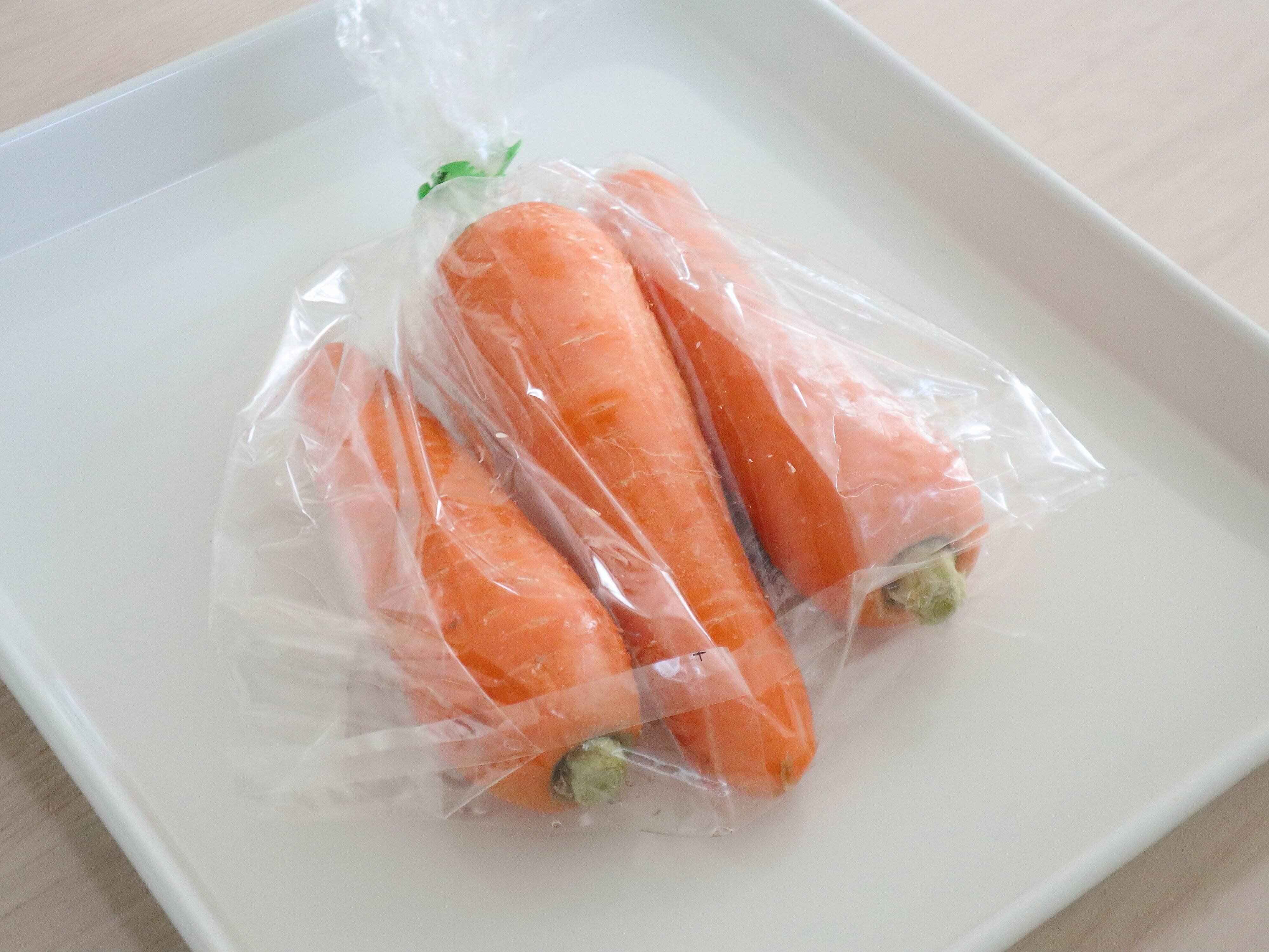 水滴がにんじんに長時間触れているとカビや傷みの原因となるため、買ってきた袋のまま野菜室に入れるのはNGです。