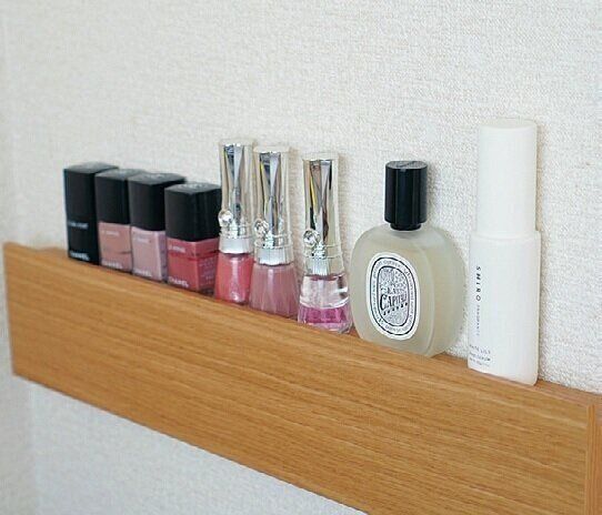 長押は前面が若干立ち上がっているので、小さな瓶類を置いても倒れません。