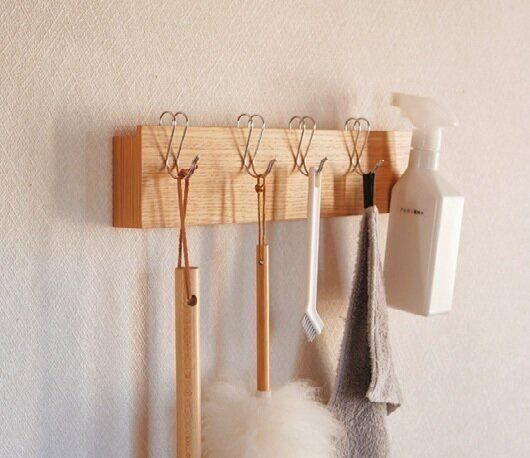 掃除道具を壁かけ型にしたらサッと取れるように。