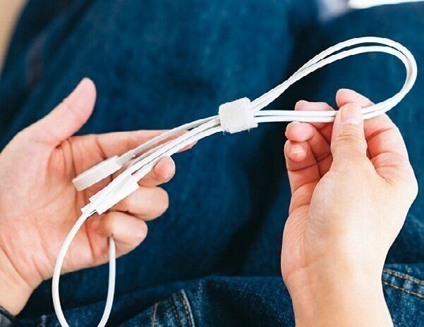 「絡まってギャーってなるコードが、マジックテープでひとまとめに。しかも好きな長さにちぎれる。無敵か!?」。