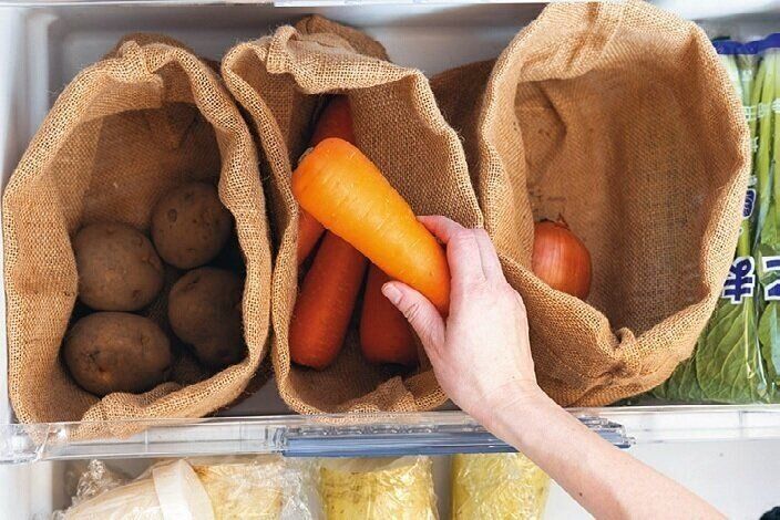 通気性のよいジュート素材。「分別しやすく出し入れしやすいので、苦手だった野菜の管理がラクに。くずの掃除も簡単~」。