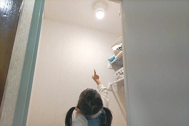 子どもが自分でトイレをするようになったとき、電気のスイッチに手が届かず、いちいち呼ばれていました。つけ替えてからはストレスフリーに!/オーム電機の「LED電球 E26 人感センサー」¥980