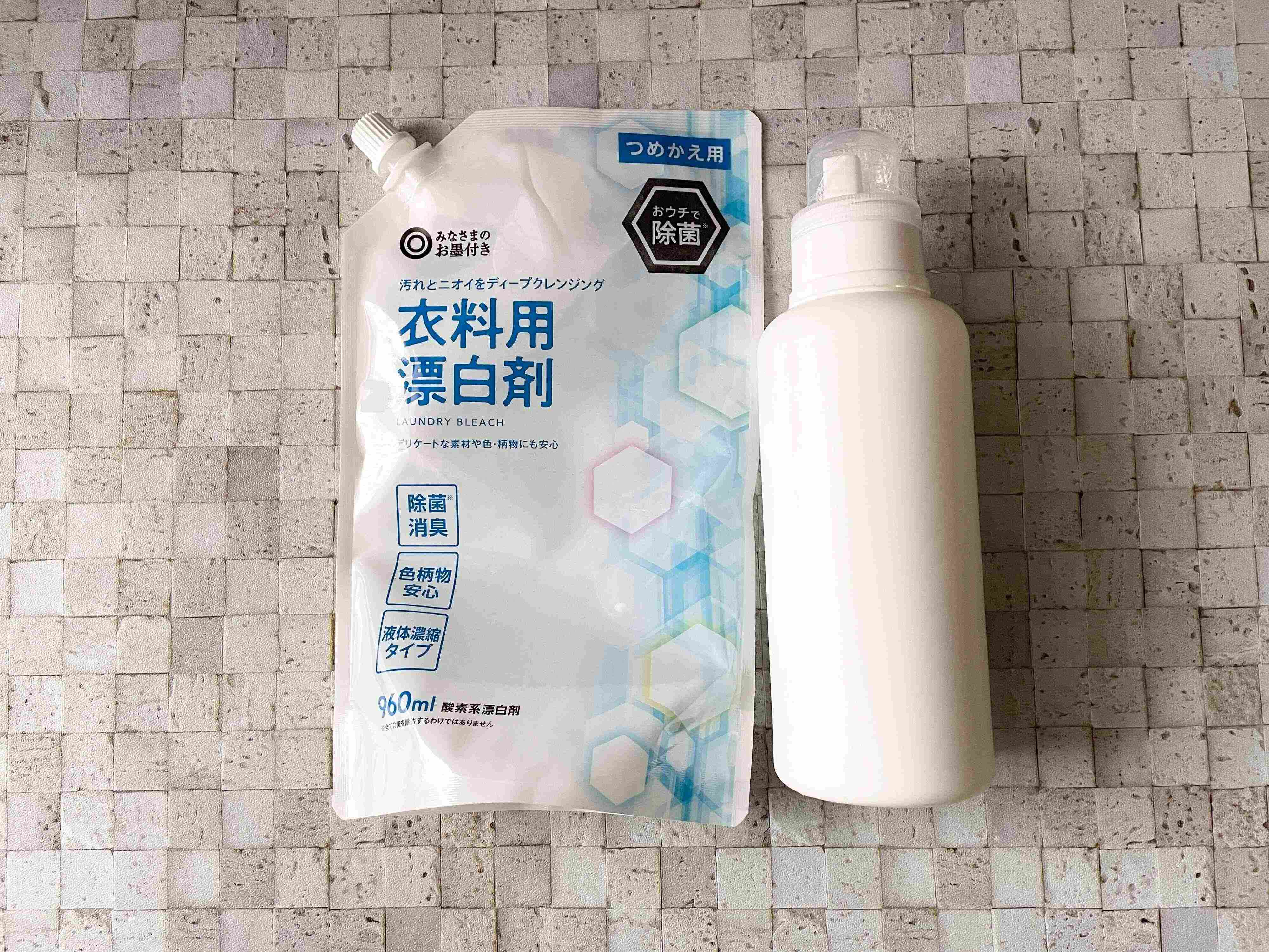 洗濯物を除菌するには「酸素系漂白剤」を使うのがおすすめ。除菌や消臭の効果がありながら、色柄ものにも使えて安心です。