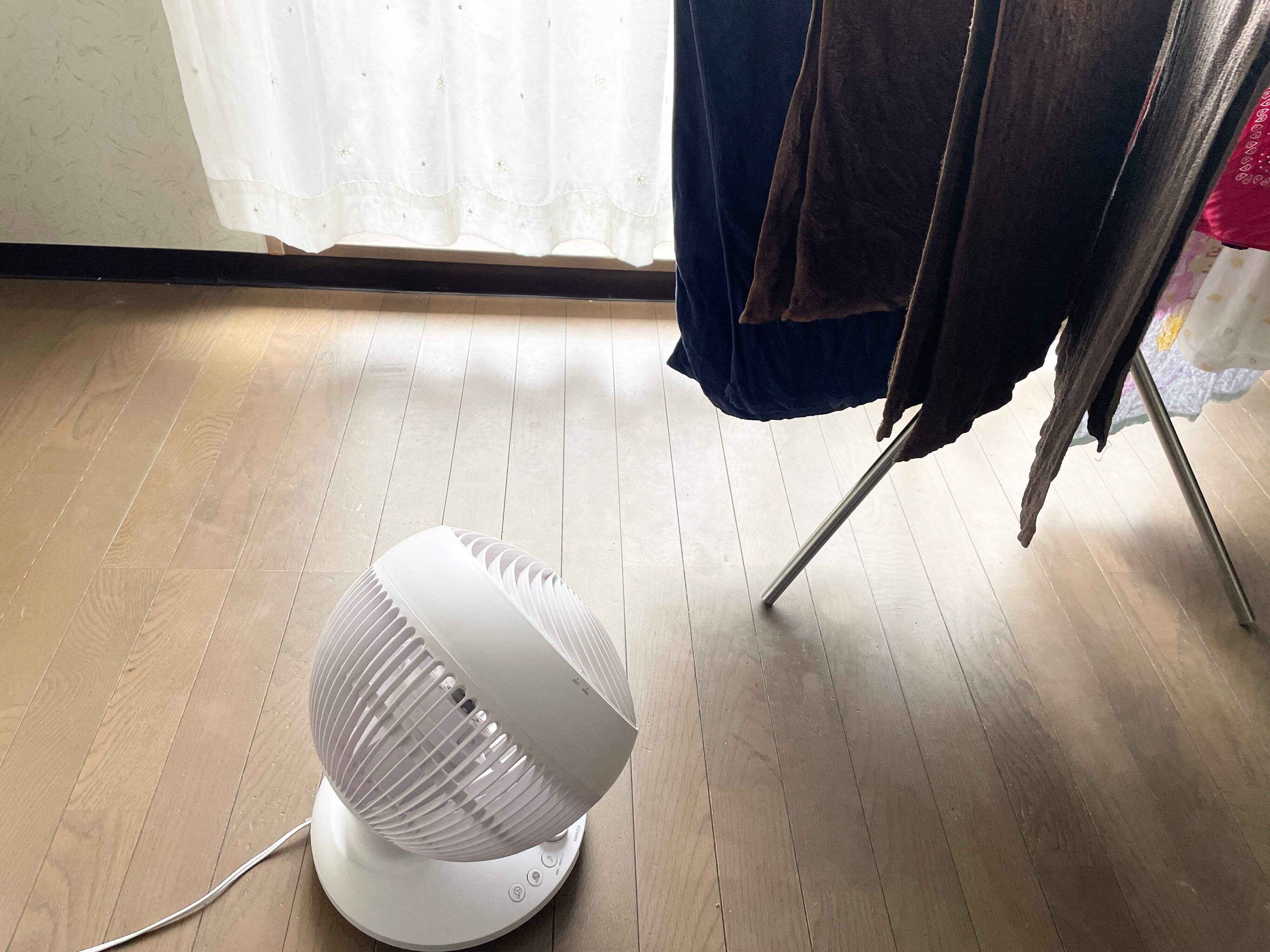 ですから、部屋干しでも5時間以内に乾くように、浴室乾燥機能を使い熱風で乾かすか、扇風機の風を当てて湿気を飛ばし、洗濯物が乾くスピードを上げています。