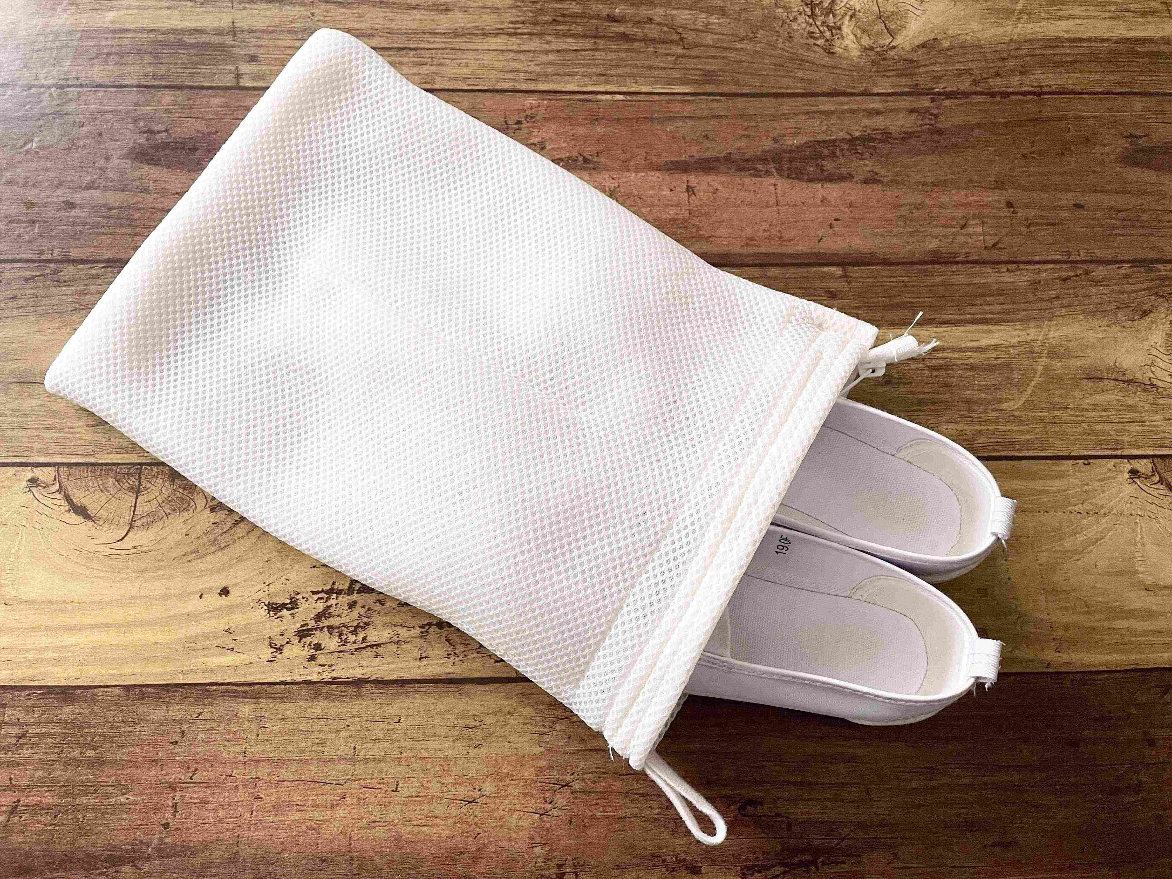 というわけで、ダイソーの上履き洗いネットを使い、洗濯機で洗うことにしました。汚れも落ちるし何も問題なし。