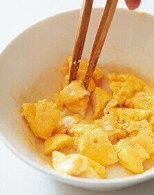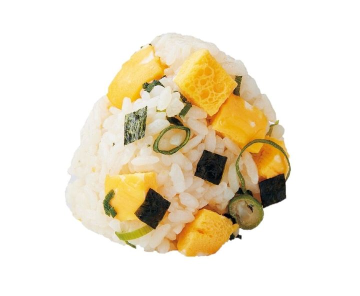 耐熱容器に溶き卵を入れてめんつゆを混ぜ、電子レンジ(500W)で30秒加熱し、軽く混ぜる。再度30秒加熱して取り出し(卵が固まらなければ、再度加熱)、箸で切るように混ぜる。ご飯に卵とお吸いものの素、ねぎを加えて混ぜ、おにぎりにする。