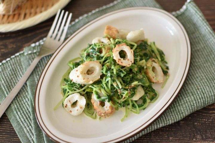 豆苗の独特の味わいにピリッとしたマスタードがよく合う!ちくわも入れて食べ応えもしっかりあるので、おつまみにもぴったりです。