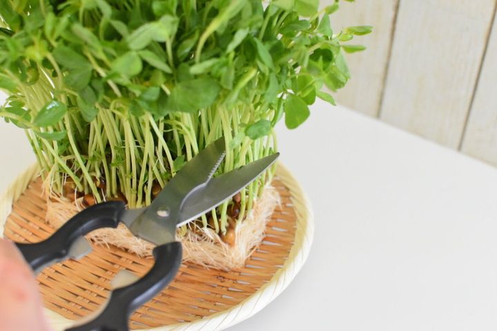・豆苗は洗って水気を切ったら、根元部分をカットする