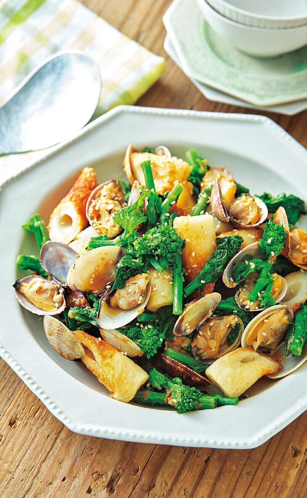 あさりとちくわと菜の花のみそ蒸し