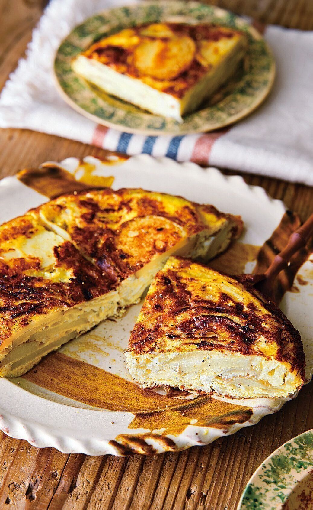 直径24cmのフライパンにオリーブ油を回し入れて中火で熱し、(2)を入れて卵が少し固まる程度までかき混ぜてから約5分焼く。底面にしっかりとした焼き目がついたら皿などをかぶせて裏返して、もう片面も弱火で約8分焼く。器に盛り、黒こしょう適量をふる。