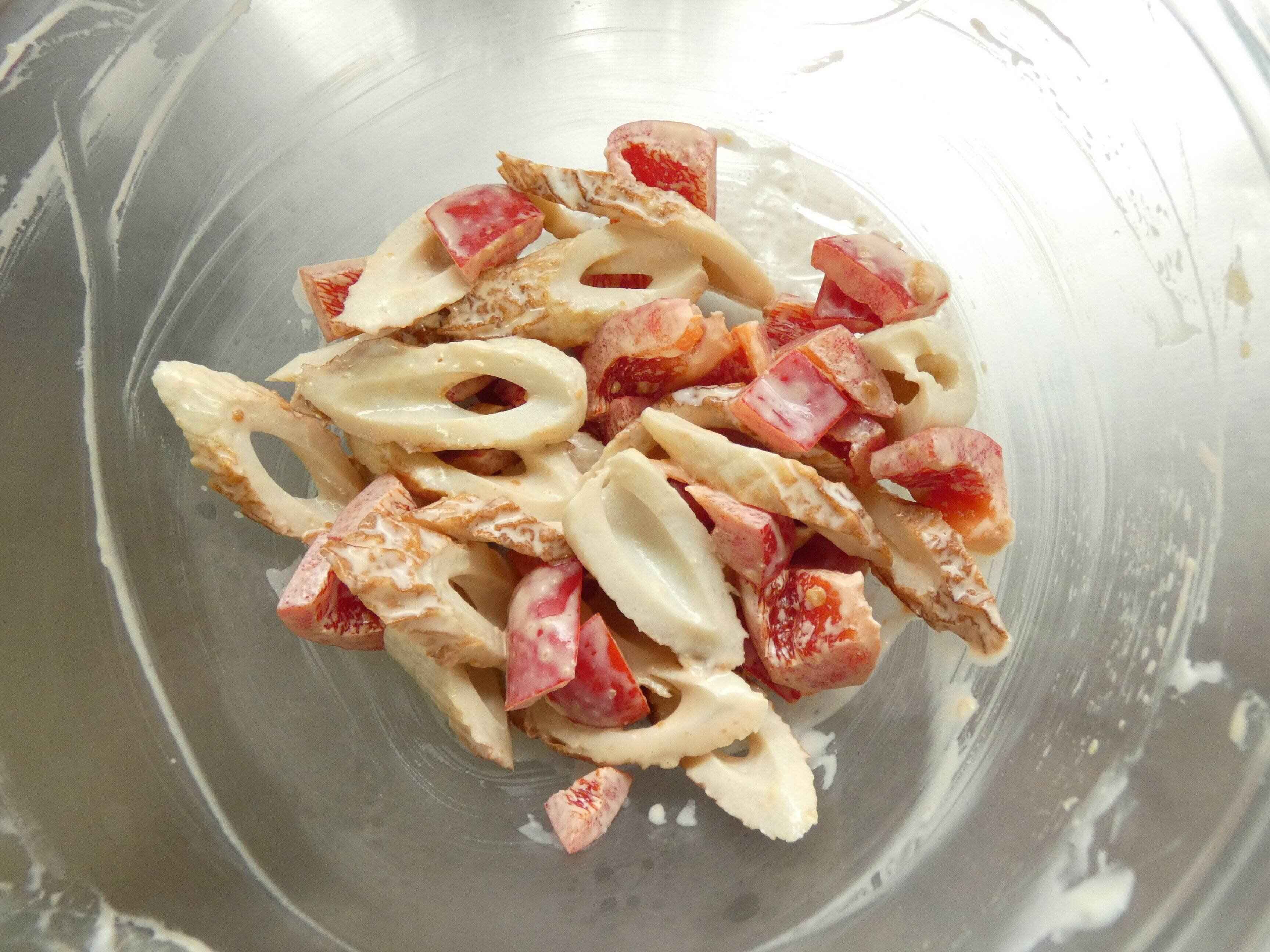 味噌とマヨネーズを先に混ぜ合わせると、味が全体に均一になります。パプリカは大きさによって量を調節してください。赤いパプリカを使いましたが、黄色やオレンジでもOK。2色を使うと彩りよくなります。