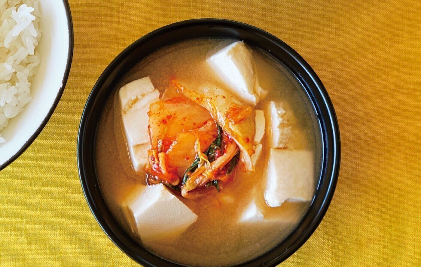 みそを溶いて火を止める。器に盛り、キムチをのせる。