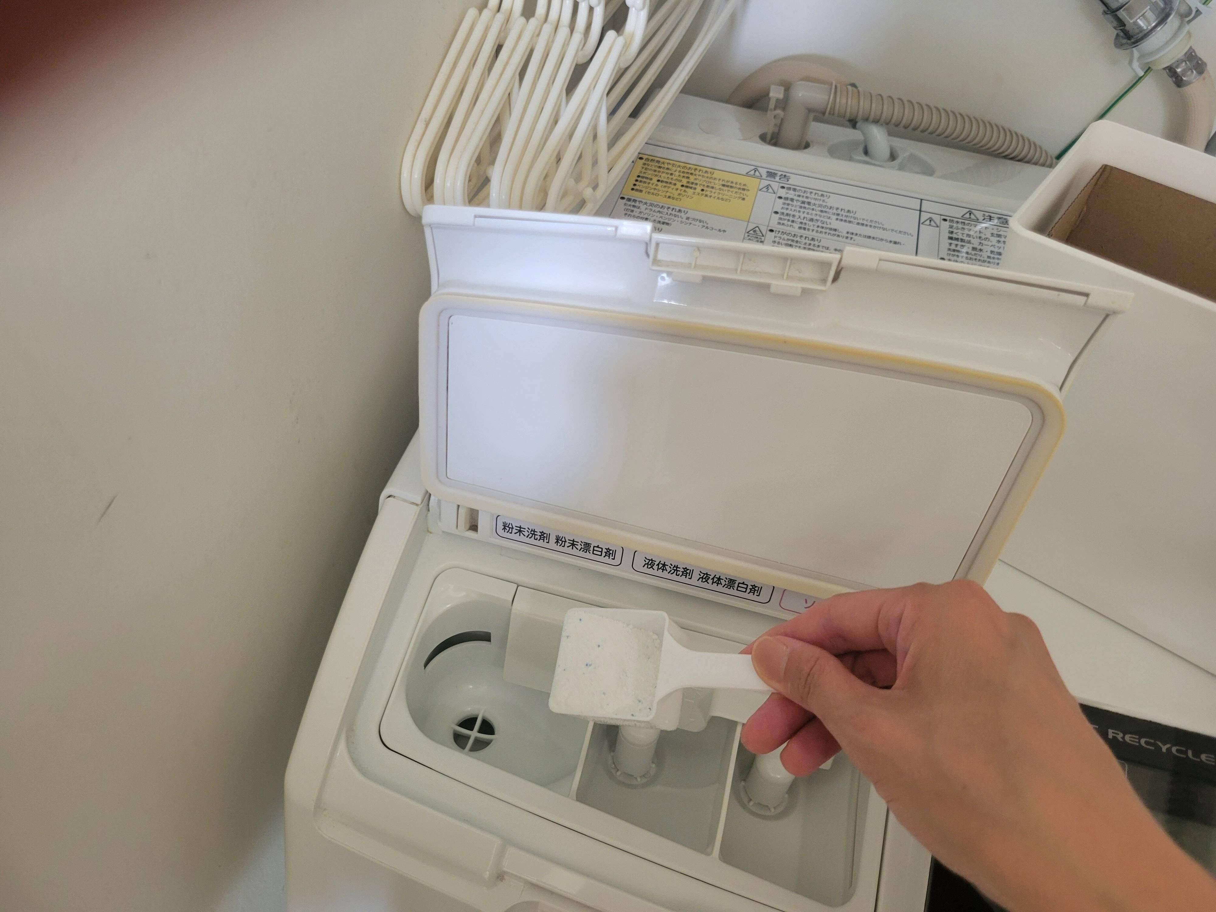 そこはあらかじめ水や残り湯で溶かすことで解決。そのまま洗濯槽に投入します。
