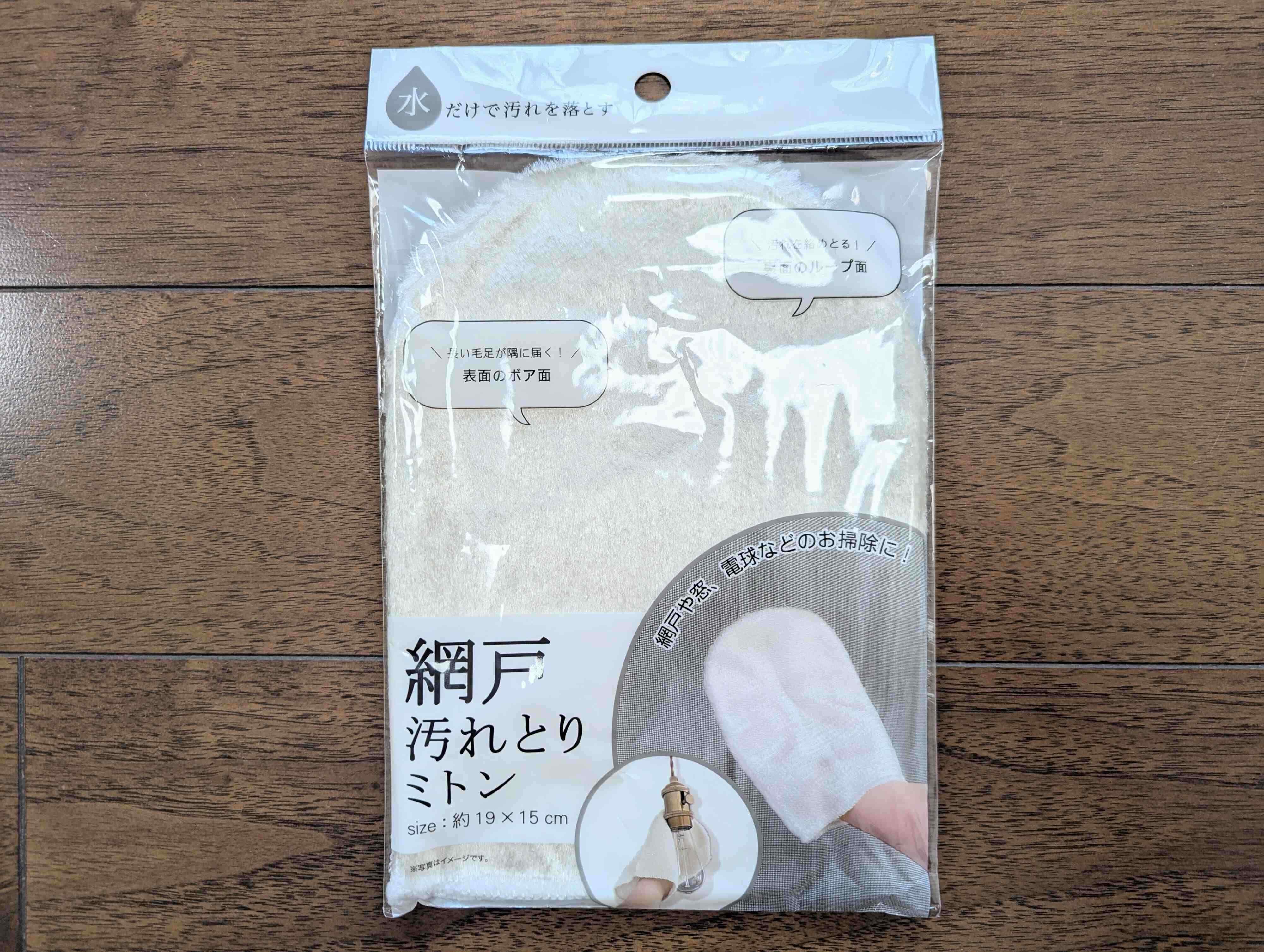 そんな網戸掃除の最適解が、セリアの「網戸汚れとりミトン」(110円)。手にはめて網戸をなでるだけで、ホコリや砂をすっきり落とせる掃除アイテムです。長い毛足で隅まで届く「ボア面」と、汚れをしっかり絡めとる「ループ面」の二面構造で、乾拭き・水拭きどちらでもOK。汚れがひどい場合は中性洗剤をプラスしても。