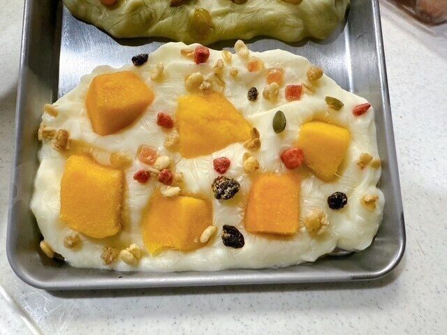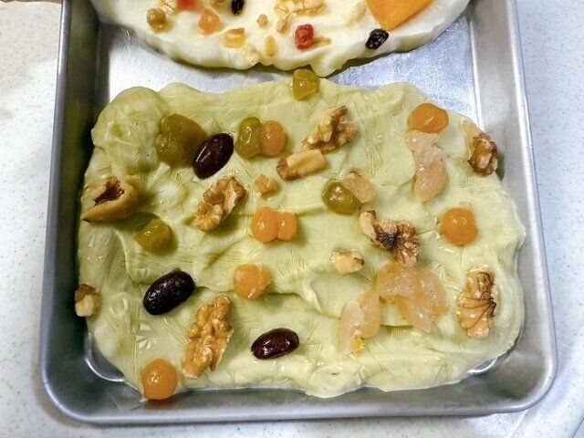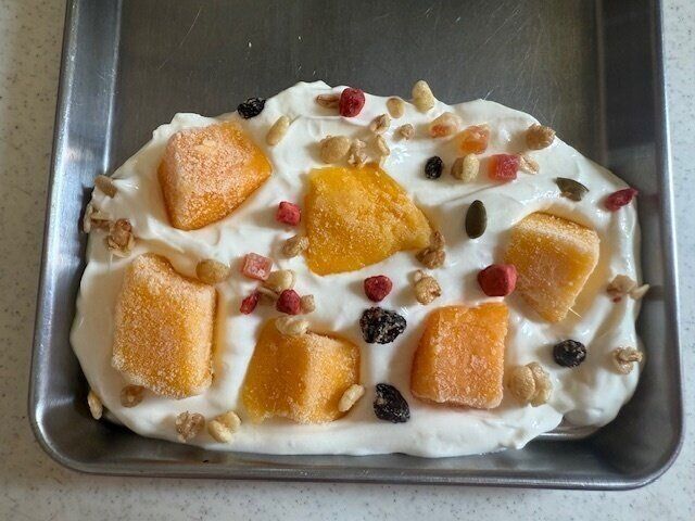 基本の「ヨーグルトバーク」ができたら、次はトッピングをしていきます。