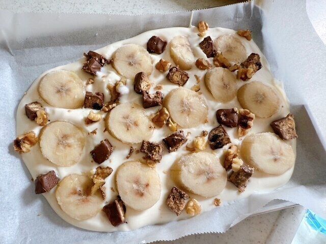 子どもも大好きで食べやすいバナナを使った「ヨーグルトバーク」。